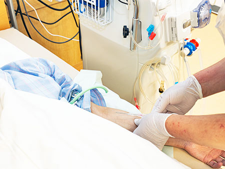 うまく働かなくなった腎臓の代わりに、体内に蓄積した余分な老廃物・水分を取り除き、血液を浄化する治療法です。